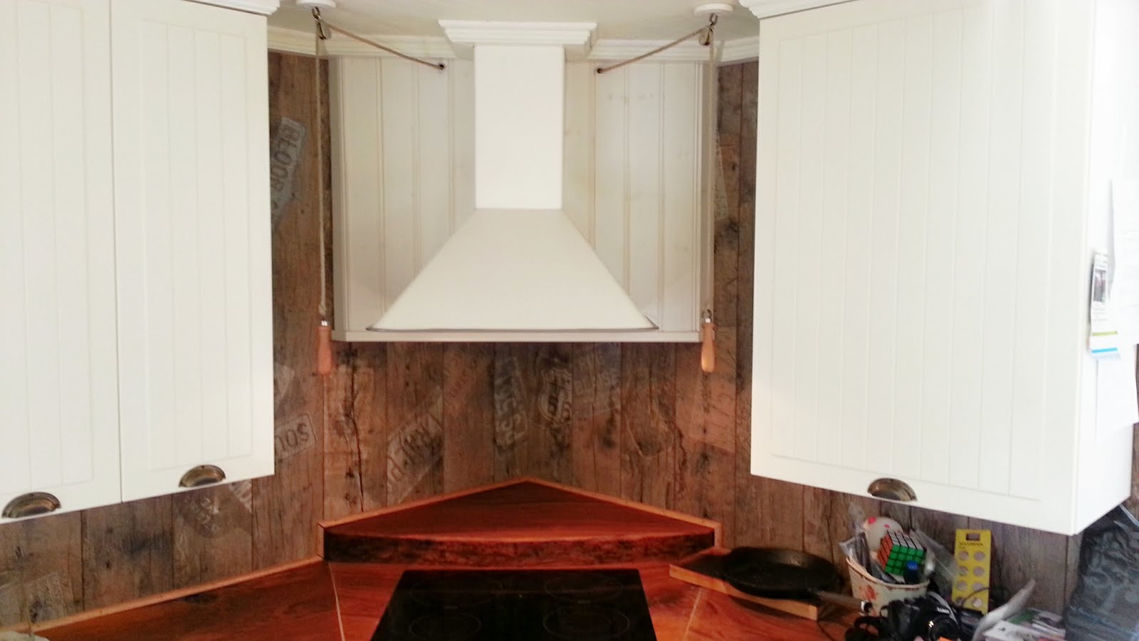 Description: When I were about to put up my kitchen fan in the corner of the kitchen, I soon discovered I needed a corner cabinet to mount it on, I began to build a custom made cabinet, just to hang the kitchen fan on. But I realized there were lots of space going to waste inside this "come to be, empty cabinet" And as it would be hanging a kitchen fan on the front of the cabinet, no door could be fitted to get access to it's inside. I didn't want one of those pull-out-under-the-cabinet-kitchen-fans as I wanted a retro feeling to the kitchen.